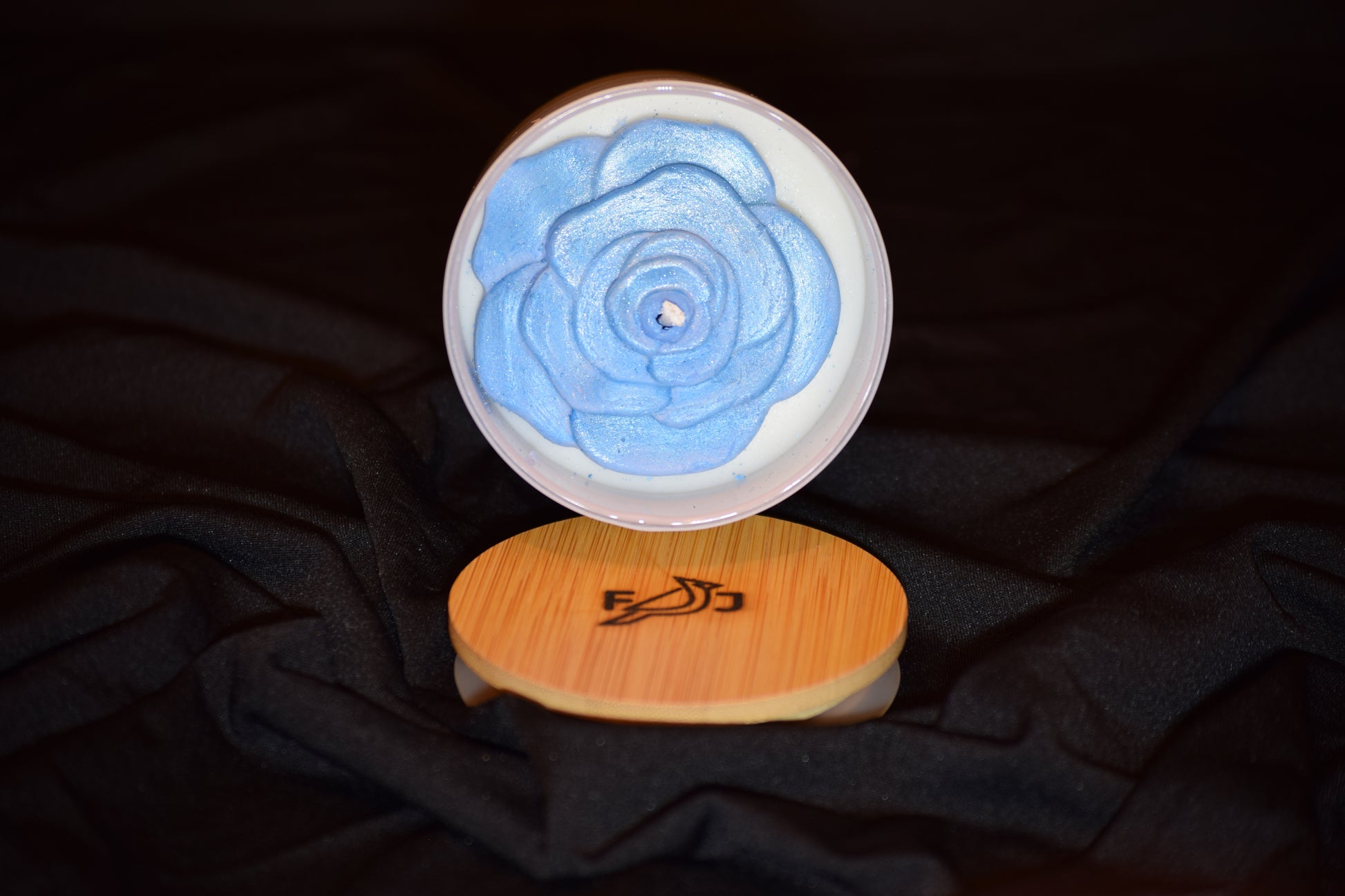 8 oz. Wisteria & Lilac with blue rose melt on top - Sparkling fruity top notes with base notes of a floral bouquet.